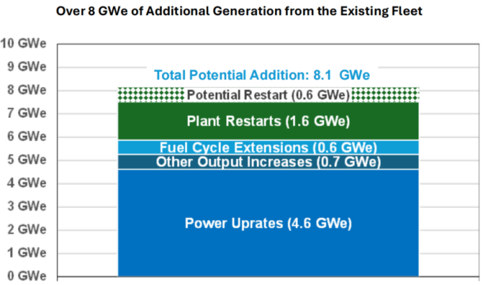 潜在新增总容量:8●◆.1GW;潜在重启:0….6GW;机组重启:1.6GW;燃料循环延长:0◇.6GW◁★◇;其他发电量提升•:0.7GW;功率提升=◁:4.6GW。