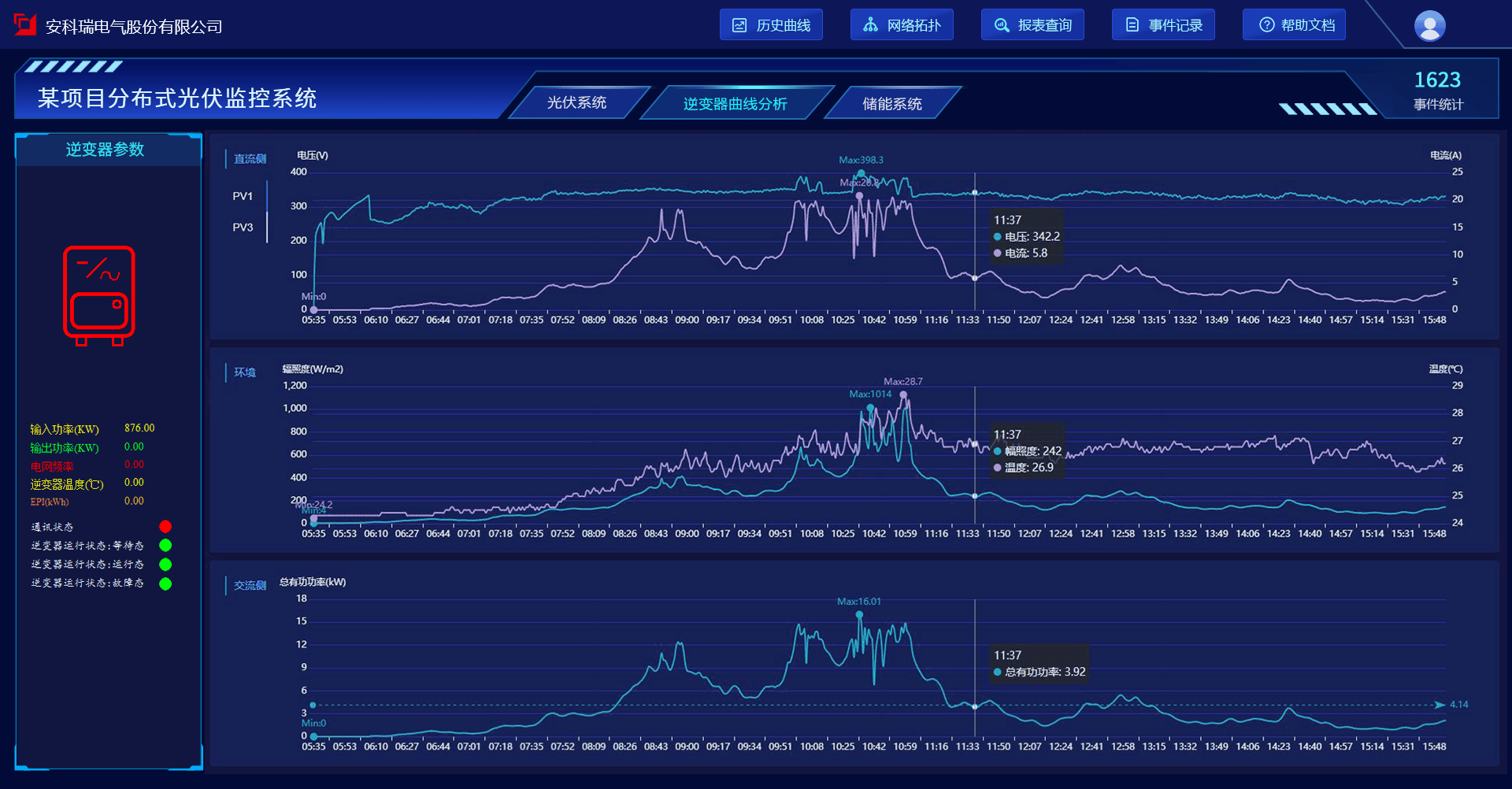结合先进的数据处理技术,平台能快速识别各类异常情况并及时发出预警▽,将安全风险扼杀在萌芽状态•▲,让电站管理从“被动应对”转向“主动预防”。