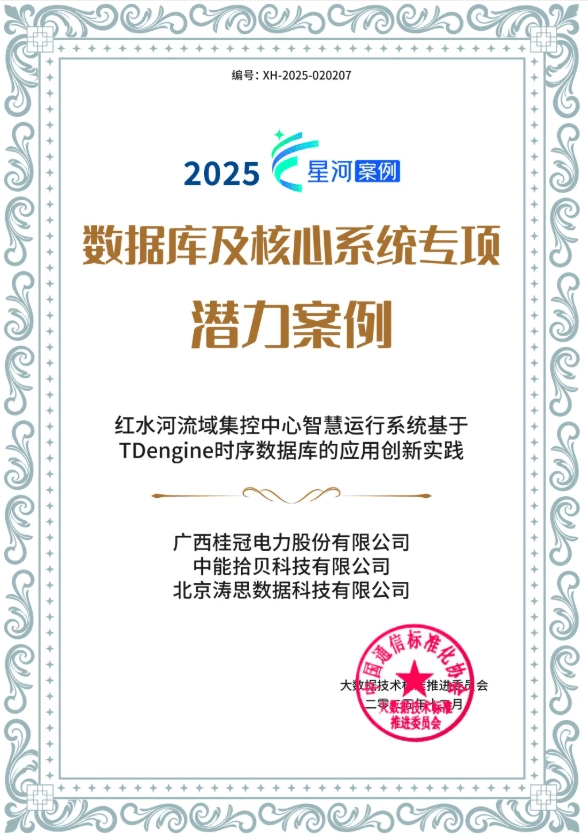 近日■★◁,中国通信标准化协会大数据技术标准推进委员会(CCSA TC601)正式公布2025数据智能“星河(Galaxy)★☆□”案例评选结果。中能拾贝科技有限公司(以下简称“中能拾贝”)携手广西桂冠电力股份有限公司(以下简称□▽▪“桂冠电力”)、北京涛思数据科技有限公司申报的两项案例——《红水河流域集控中心智慧运行系统基于TDengine时序数据库的应用创新实践》与《水电站智能巡点检系统的创新应用与实践》■,分别入选“数据库及核心系统★”与“行业数智应用”专项潜力案例