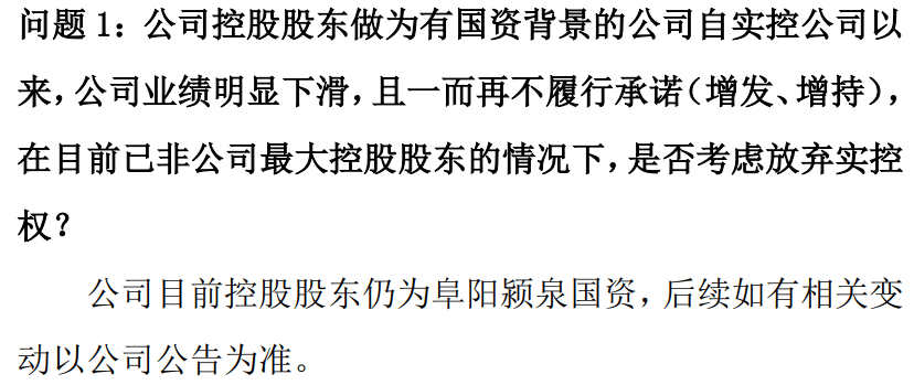 公司公告解释,称增持义务人阜阳泉赋积极筹措资金▽■,但增持股份所需资金未能筹措到位▷-☆,本次增持计划披露后受自身流动资金状况◆★、金融市场环境-=、融资渠道等客观因素影响,增持义务人原增持计划的实施遇到困难。