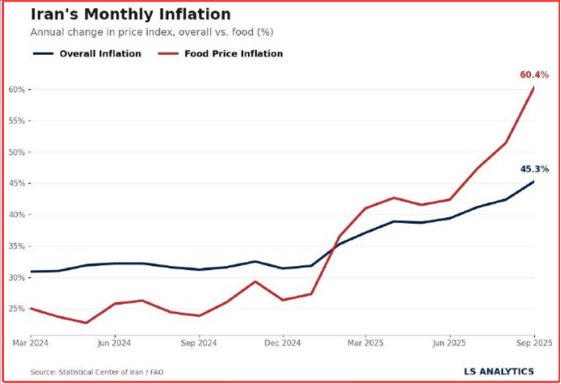 注意,这是官方的数据,真实的数据更加惨烈,因为很多商品看似涨价只有一倍,但问题是供货不足。德黑兰市民需排队数小时购买补贴面包,部分面包店因原料短缺倒闭,1.2万家面包店关停□。