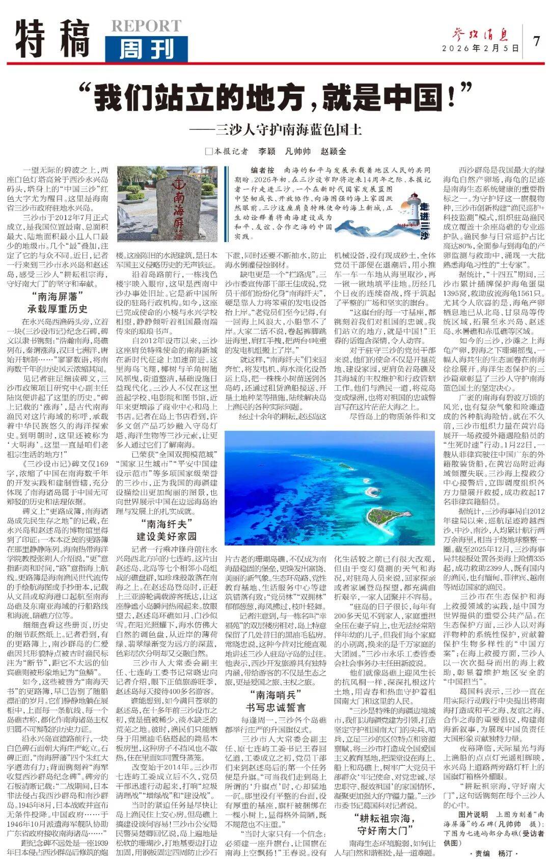 编者按南海的和平与发展承载着地区人民的共同期盼。2026年初,在三沙设市即将迎来14周年之际,本报记者一行走进三沙,一个在新时代国家发展蓝图中坚韧成长、开放协作、向海图强的海上家园跃然眼前。三沙这座肩负特殊使命的海上新城,正生动诠释着将南海建设成为和平、友谊、合作之海的中国实践。