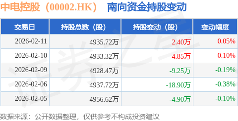 证券之星消息,2月11日南向资金增持2.4万股中电控股(00002.HK)。近5个交易日中,获南向资金减持的有3天,累计净减持25.8万股。近20个交易日中,获南向资金减持的有15天,累计净减持130.9万股。截至目前,南向资金持有中电控股(00002.HK)4935.72万股,占公司已发行普通股的1.94%。