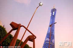 海珠区广州塔下的有轨电车车站旁新增两盏“人